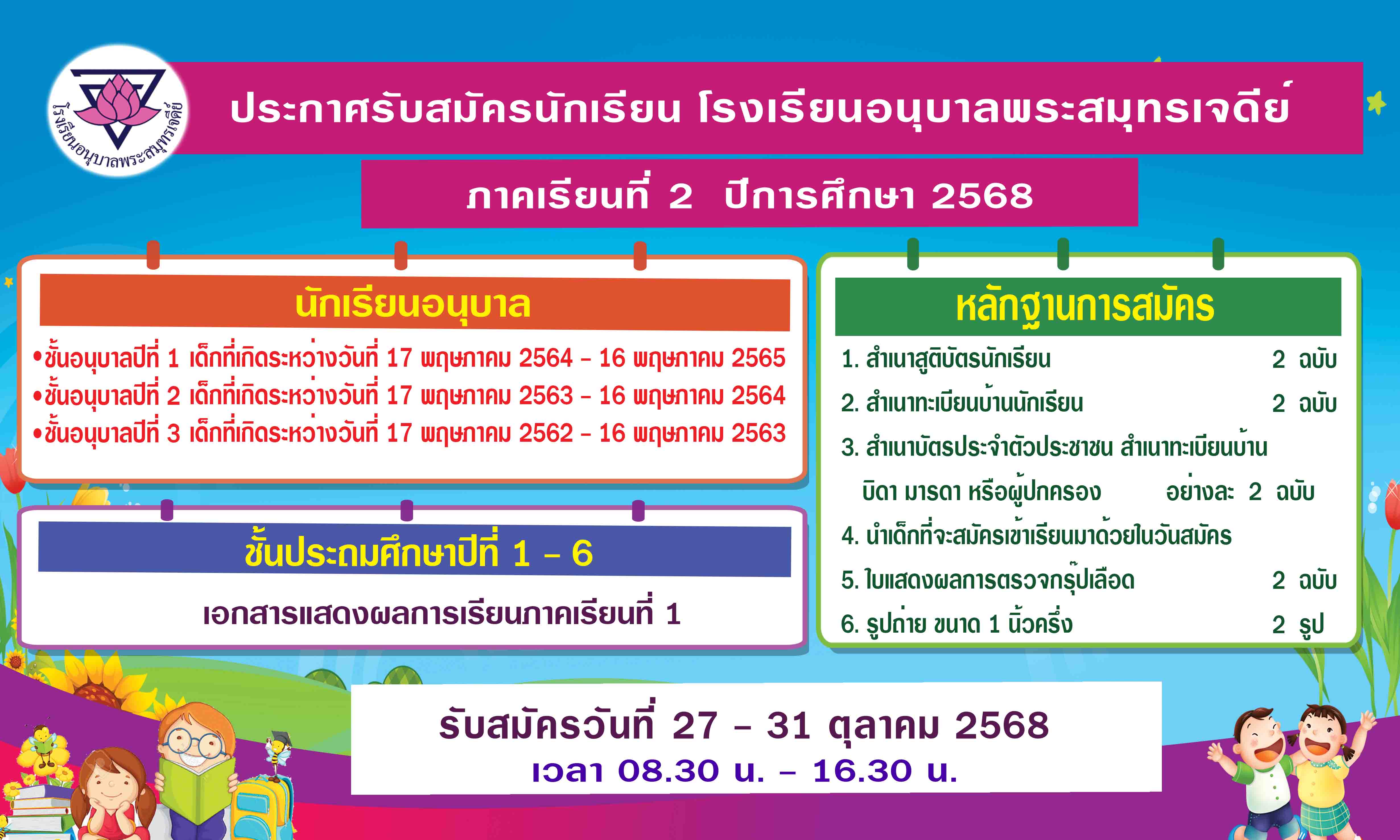 ประกาศรายชื่อนักเรียนที่มารายงานตัวเข้าเรียน ปีการศึกษา 2568 โรงเรียนอนุบาลพระสมุทรเจดีย์ 21 ก.พ. 68