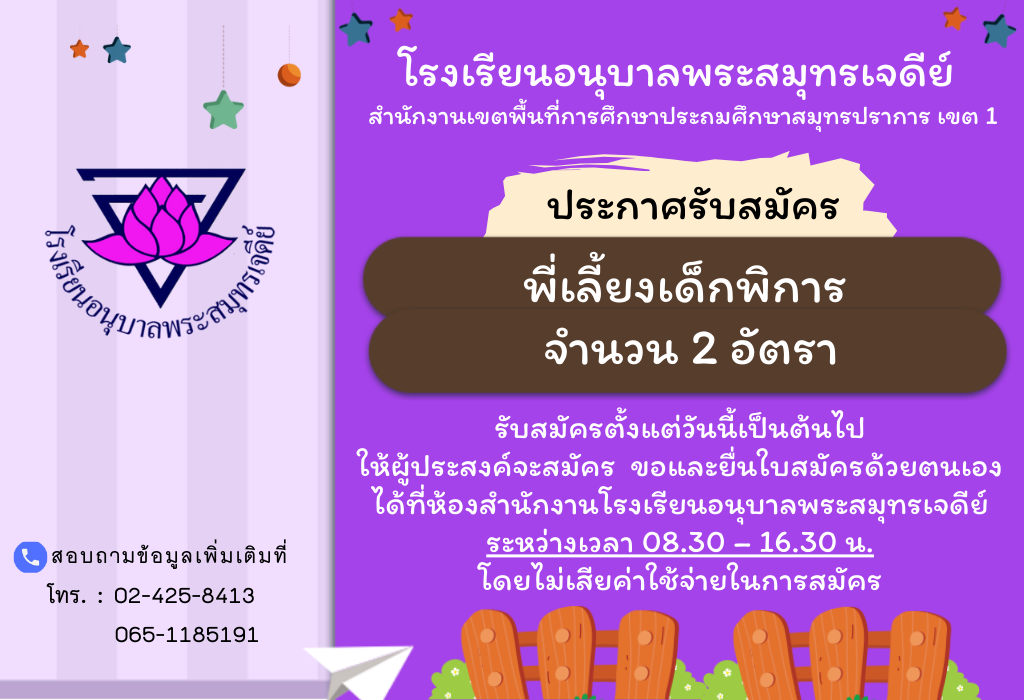 ยินดีต้อนรับเข้าสู่เว็บไซต์ โรงเรียนอนุบาลพระสมุทรเจดีย์ค่ะ...